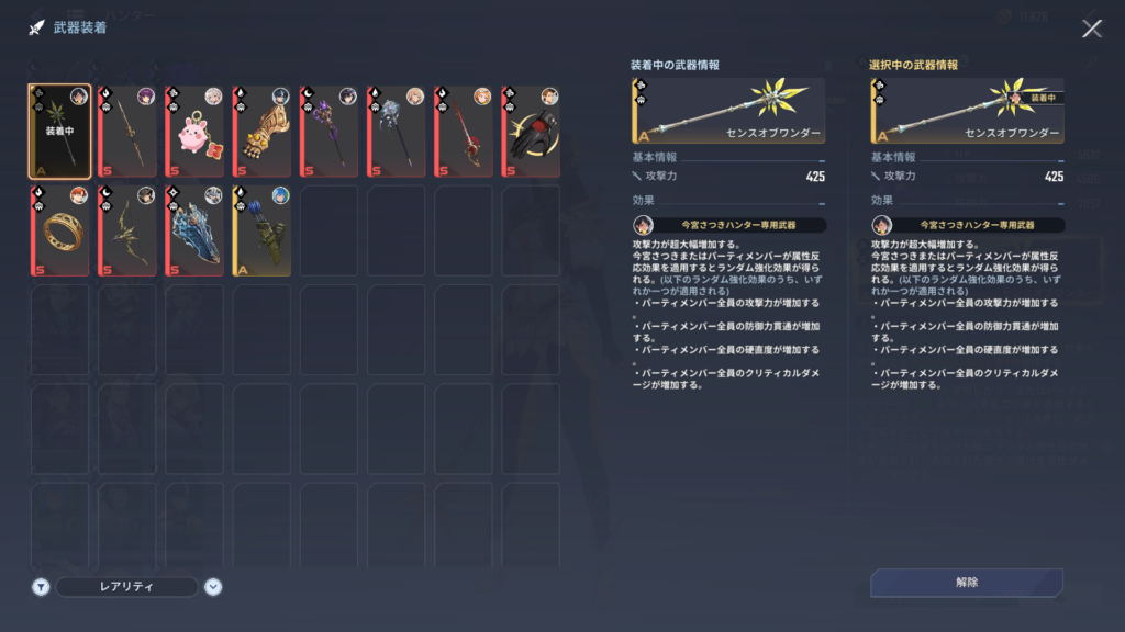専用武器効果を一度しっかり確認してみると、