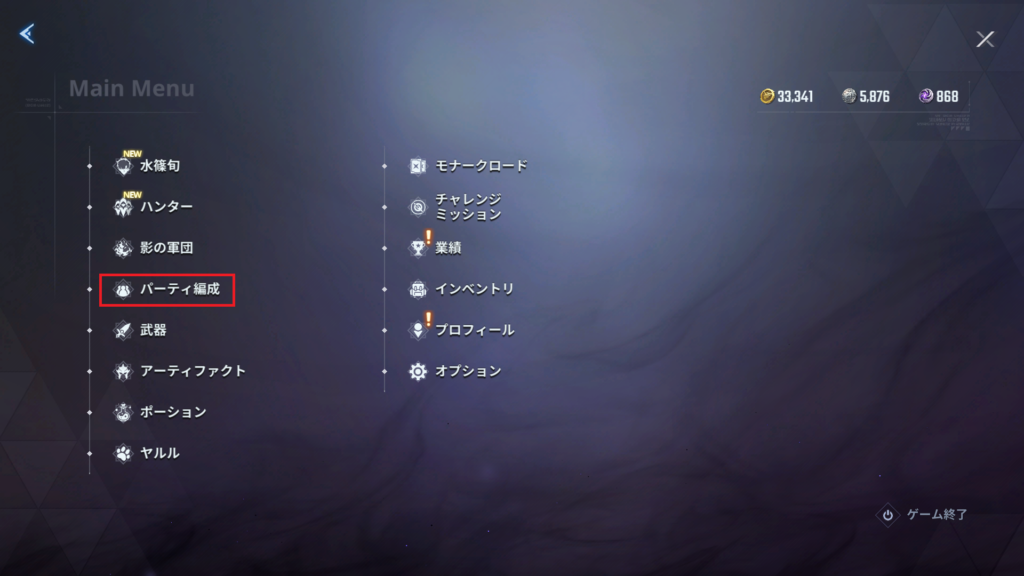 **「パーティ編成」**を選びます。